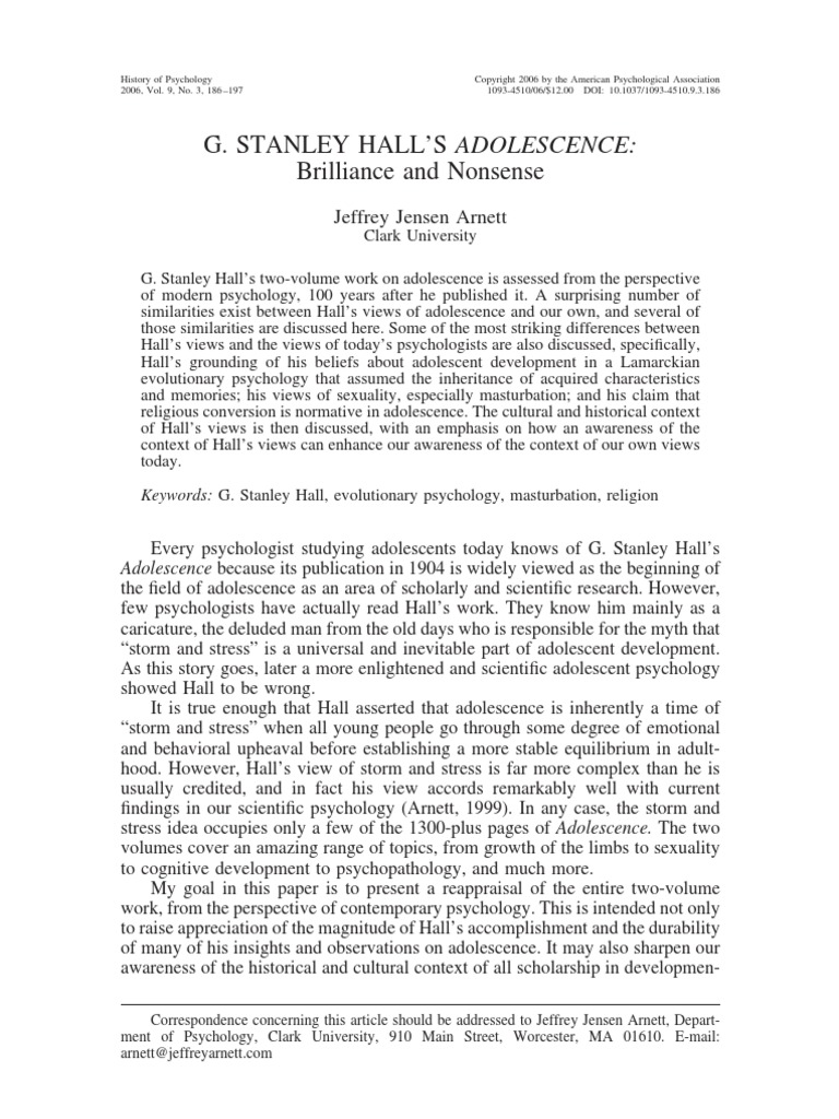 According To G Stanley Hall Adolescence Is. This stage corresponds to the end of the developmental process: maturity. A surprising number of similarities exist between Hall's views of adolescence and our own, and several of those similarities are discussed here.