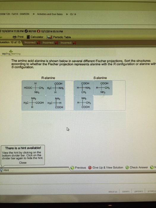 Solved: The Amino Acid Alanine Is Shown Below In Several D ...